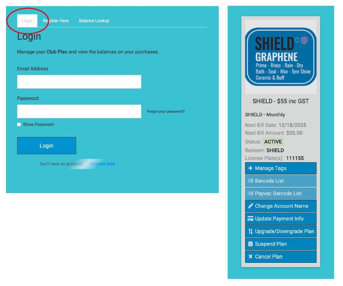 - you can now log in and manage your plan.