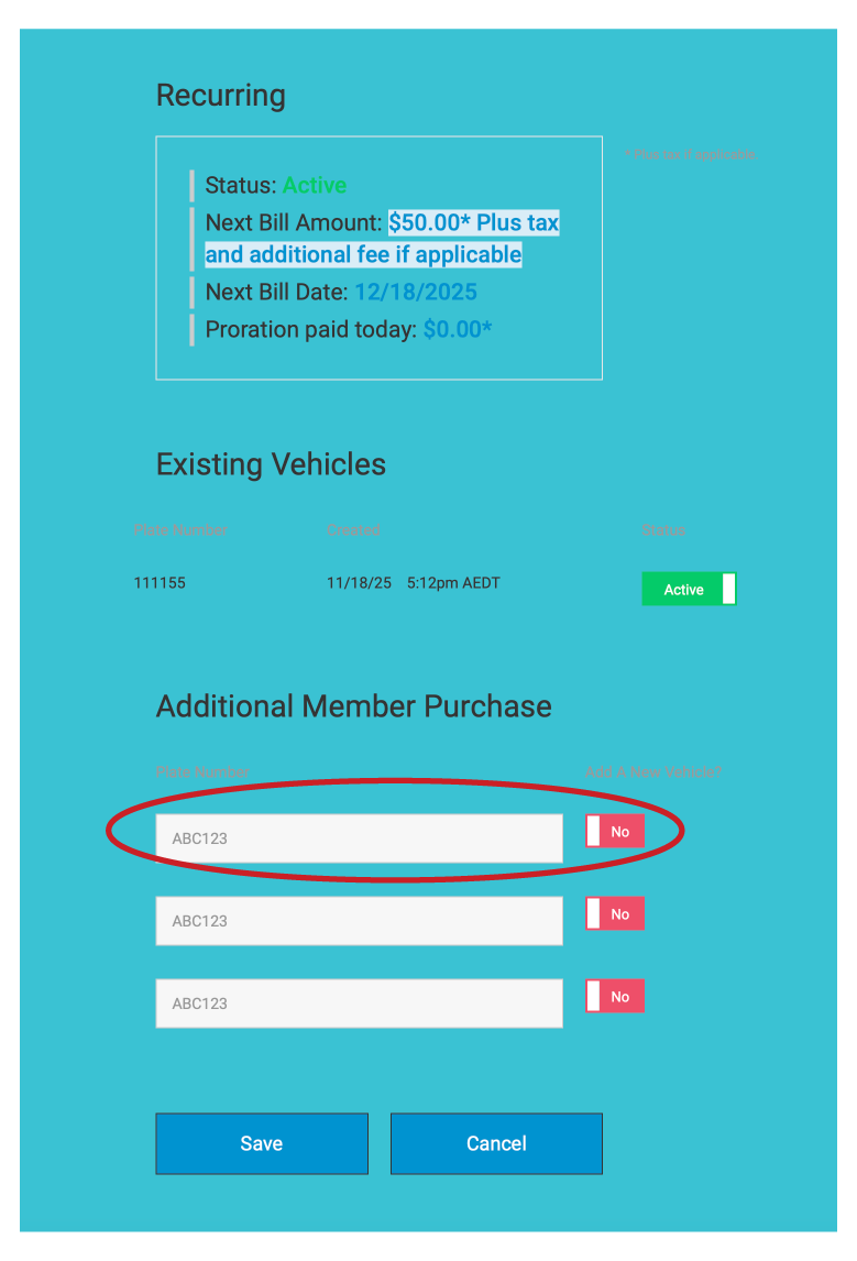 Type in the licence plate number of the vehicle you want to add.6. Save Your Changes