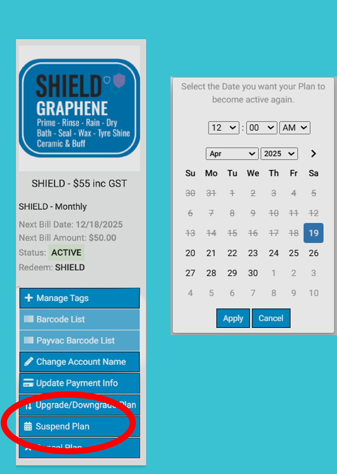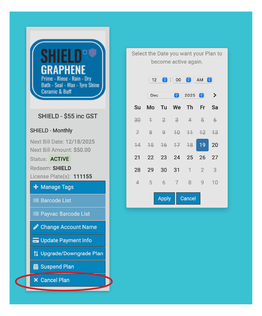 IMPORTANT NOTICE: Suspend Plan is not available on Annual Plans.